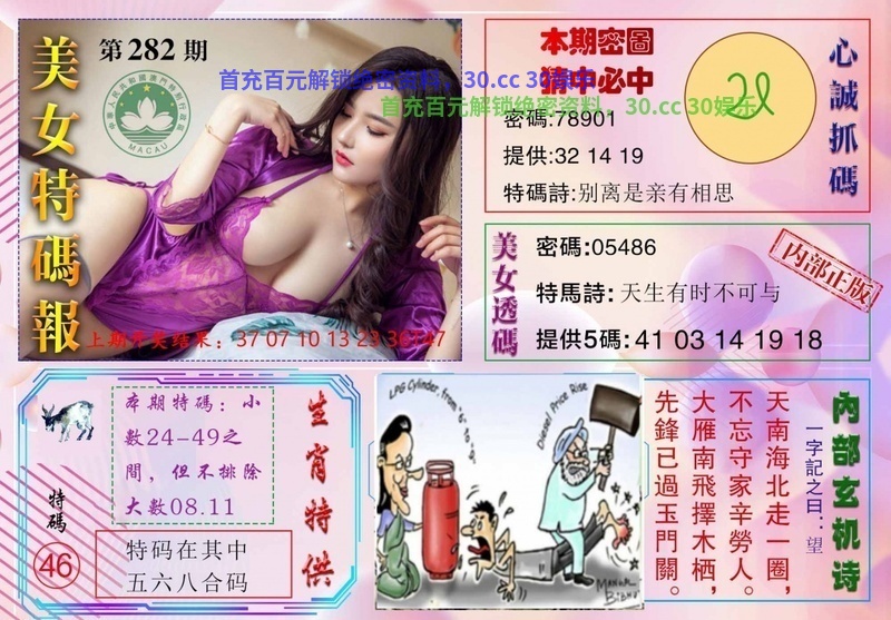 282期:三行中特【火金水】开:牛41中